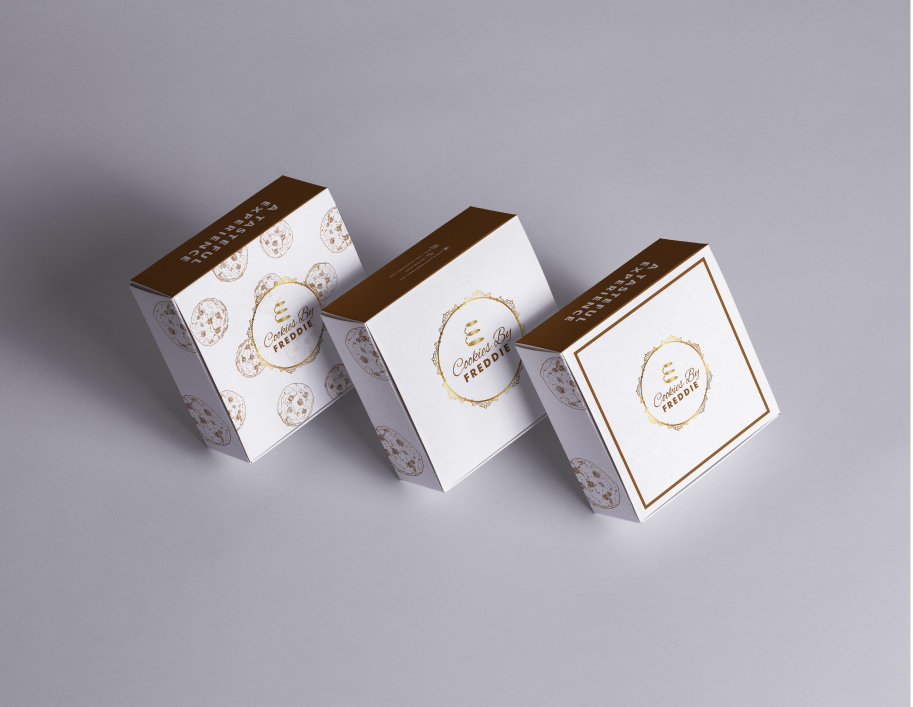 Cookie boxes, wrapping, and presentation materials designed to look like a gift, not a takeaway. When someone receives Cookies by Freddie at a wedding, the packaging is part of the experience.